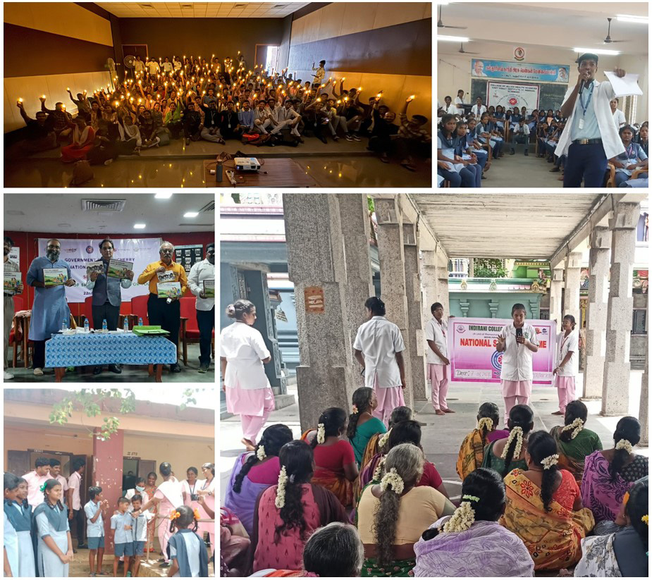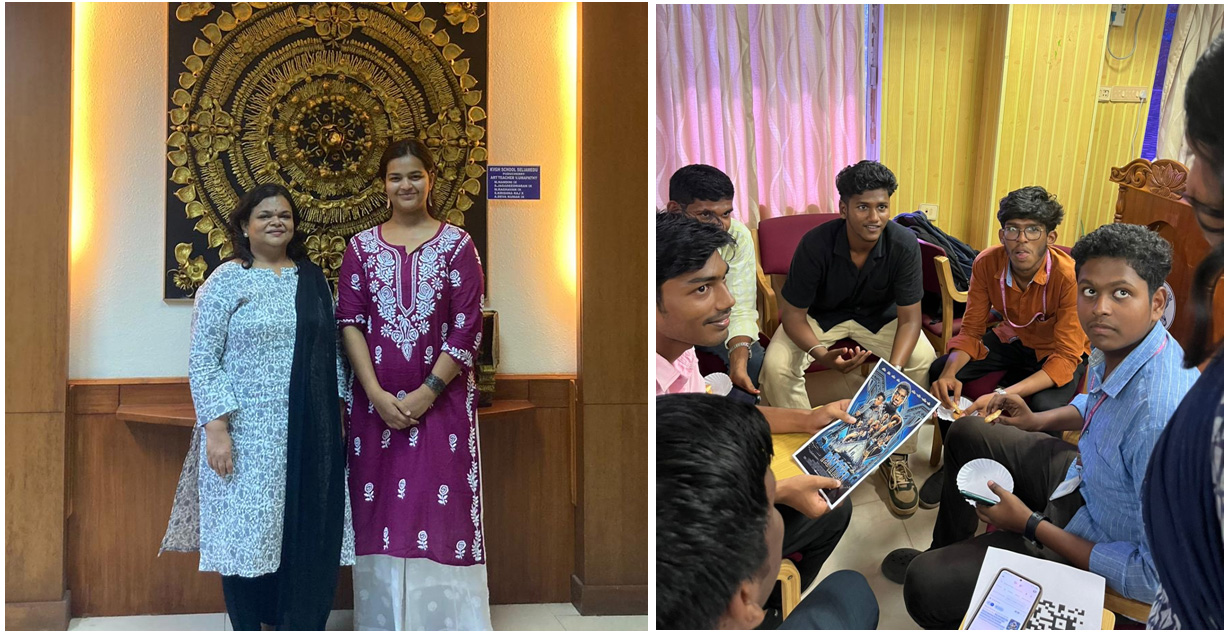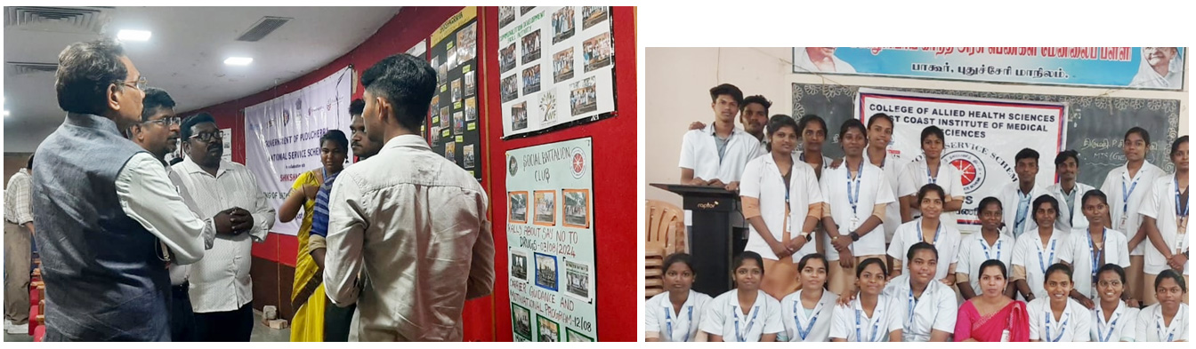 L – Meeting with Mrs. Priyadarshini, Director of Education, Puducherry. R – Interacting with NSS students in Puducherry.